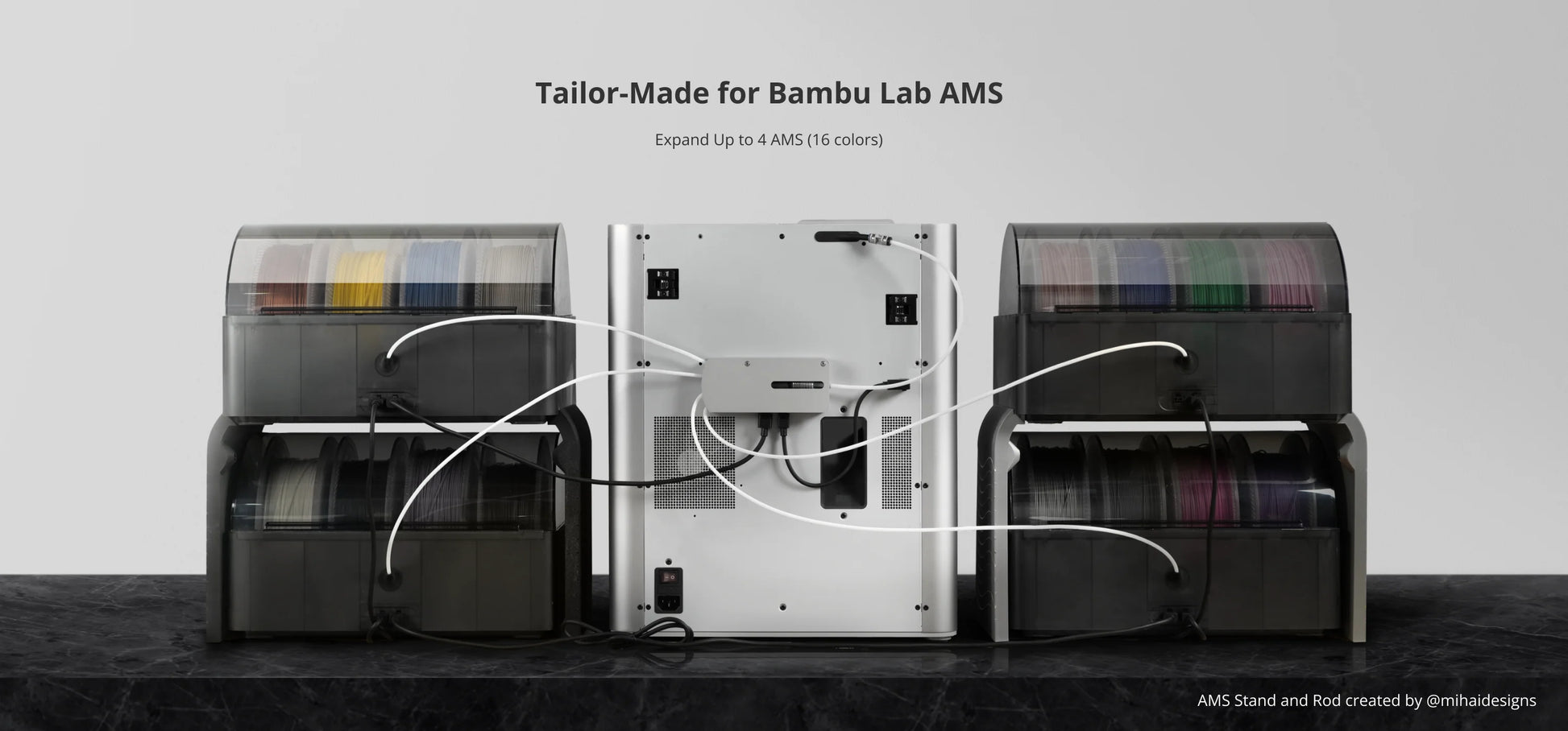 The AMS Hub is used to expand the number of AMS connected to Bambu X1/P1 series printers from 1 AMS unit (4 channels) to a maximum of 4 AMS units (16 channels) to improve the refueling speed across your multiple AMS units and support the redundancy of a buffered signal.